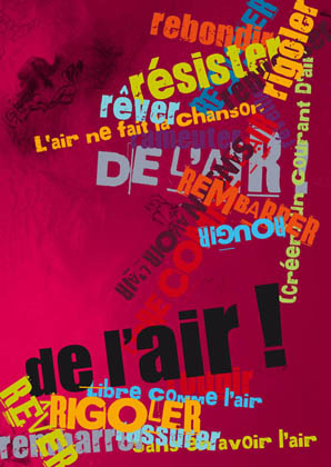 Suite à l’enquête Et moi dans tout ça ? Questions sur le grand tourbillon de la vie à laquelle un millier de jeunes femmes entre 18 et 30 ans de la Communauté française ont répondu..., des jeunes femmes se mobilisent autour de l’évènement De l’air ! Lors de cette soirée, vous assisterez à la présentation des résultats de cette enquête. Ce sera également l’occasion de découvrir la brochure De l’air ! et de rencontrer des jeunes féministes du commando anti-pouf... le tout dans une ambiance musicale signée Claudia Shallow.