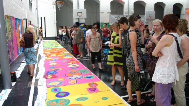 Créativité (peinture collective) et réflexion au menu de ces espaces qui ont constitué le cÅ“ur de notre démarche pendant les trois jours. Ils étaient animés avec la complicité du Miroir Vagabond, ASBL dont le travail est basé sur des techniques artistiques.