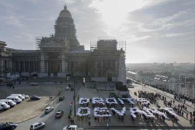C’est pourquoi, en cette Journée internationale des droits des femmes, nous avons interpellé l’opinion publique avec une action très symbolique : 600 femmes ont composé les lettres de l’expression « Droits devant ! », au pied du Palais de Justice de Bruxelles. Ce mot a été capté par la photographe de renom Marie-Francoise Plissart.